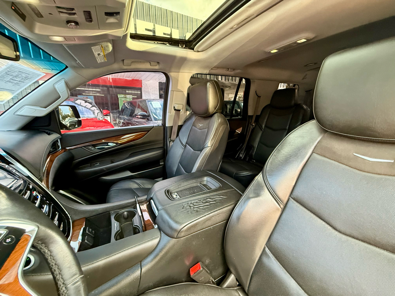 Hop into this sleek Gray 2016 Cadillac Escalade and get ready to make a statement on the road! This luxurious SUV is perfect for both family road trips and solo adventures. Safety is a top priority with the array of airbags and stability control systems, ensuring peace of mind wherever you go. The leather seats provide a comfortable ride, while the adjustable foot pedals and telescopic steering column allow you to find that perfect driving position. You'll never miss a beat with the navigation aid and subwoofer, keeping you entertained and on track during your journey. The power sunroof lets in the sunshine on beautiful days, while the rain-sensing wipers make sure you have clear visibility on rainy days. Running boards and alloy wheels add a touch of flair to this already stylish vehicle. And with a available Carfax report, you can trust in the quality and reliability of this fantastic Escalade. Don't miss out on the opportunity to own a top-notch SUV that has it all!